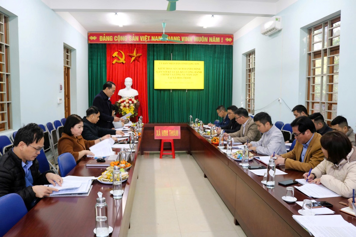 Thực hiện Kế hoạch số 283/KH-UBND ngày 02/11/2025 của UBND tỉnh kiểm tra công tác cải cách hành chính (CCHC) gắn với kỷ luật, kỷ cương hành chính và thực thi công vụ năm 2025 trên địa bàn tỉnh Lạng Sơn, ngày 28/11/2025, Đoàn kiểm tra do đồng chí Hoàng Anh Tuấn, Phó Giám đốc Sở Nội vụ làm Trưởng đoàn đã kiểm tra trực tiếp tại UBND xã Hoa Thám và UBND xã Tri Lễ.