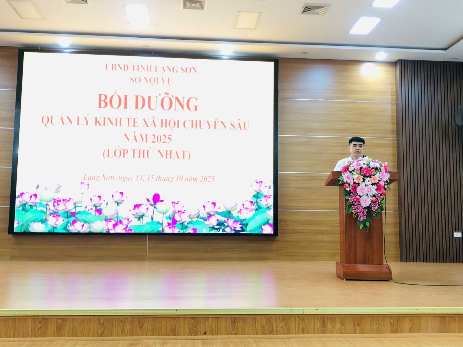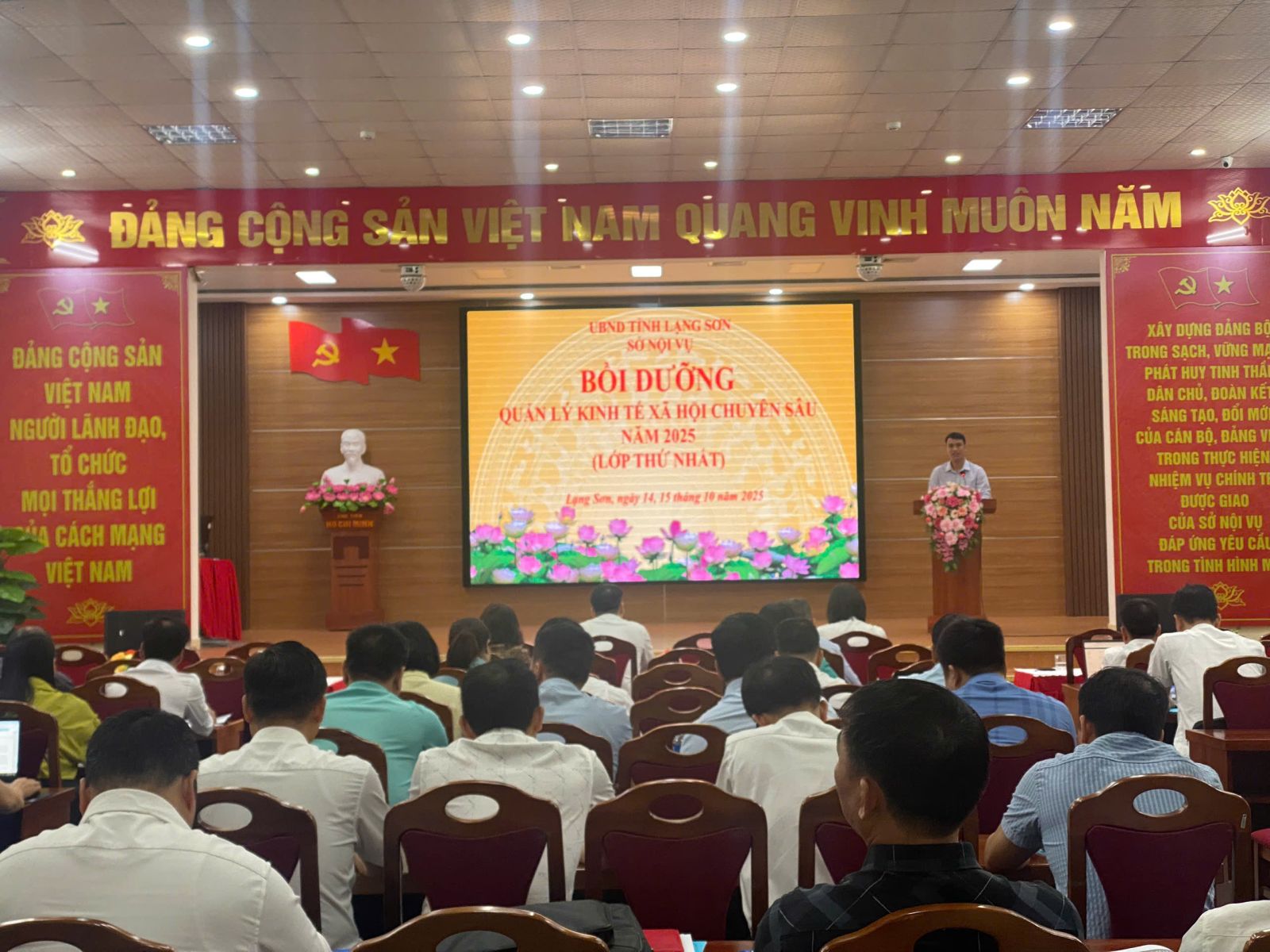 Ngày 14/10/2025, tại Trung tâm Điều dưỡng Người có công tỉnh Lạng Sơn, Sở Nội vụ tổ chức khai mạc lớp bồi dưỡng quản lý kinh tế xã hội chuyên sâu năm 2025 (lớp thứ 01). Tham dự lễ khai mạc lớp bồi dưỡng có đại diện lãnh đạo Sở Nội vụ; Thạc sĩ Nguyễn Thị Thu Trung, Giảng viên Trường Đào tạo và Bồi dưỡng nghiệp vụ kiểm toán thuộc Kiểm toán Nhà nước và 102 học viên là Phó Chủ tịch HĐND, Chủ tịch UBND, Phó Chủ tịch UBND, Công chức Ban Kinh tế - Ngân sách HĐND thuộc 65 phường, xã trên địa bàn tỉnh Lạng Sơn.