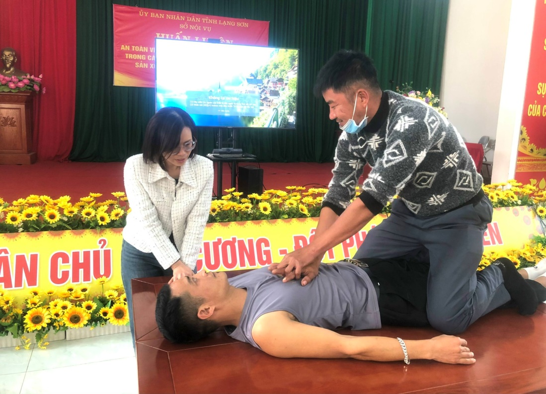 Tham gia huấn luyện, người lao động đã được giảng viên chia sẻ về hệ thống chính sách pháp luật về an toàn, vệ sinh lao động; những kiến thức cơ bản về an toàn, vệ sinh lao động; nhận diện yếu tố nguy hiểm, có hại tại nơi làm việc, phương pháp cải thiện điều kiện lao động; kỹ năng sơ cấp cứu tai nạn lao động, văn hóa an toàn, vệ sinh lao động; các loại máy, thiết bị, các chất có phát sinh các yếu tố nguy hiểm, có hại; được hướng dẫn và thực hành kỹ năng sơ cấp cứu người bị tai nạn lao động, giúp người lao động chủ động xử lý khi gặp các tình huống tai nạn lao động trong thực tế.