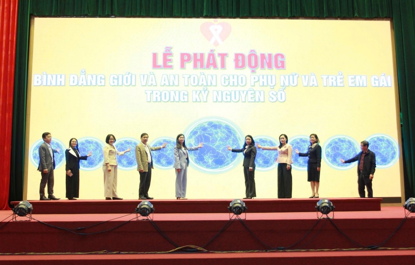 Cũng tại buổi lễ, các đồng chí Lãnh đạo tỉnh đã thực hiện nghi thức trao thông điệp truyền thông năm 2025, khẳng định cam kết xây dựng môi trường an toàn, nhân văn, không bạo lực giới cho phụ nữ và trẻ em gái trong kỷ nguyên số.