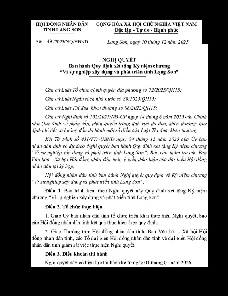 | Số hiệu | 49/2025/NQ-HĐND | Cơ quan ban hành | --- |